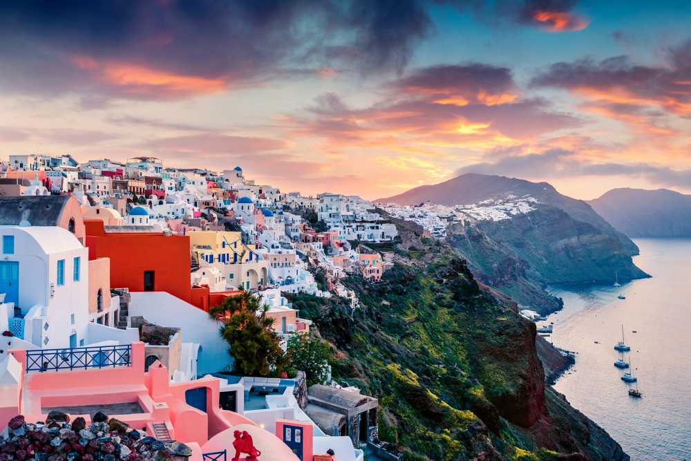 Welcome to the magical island of Santorini, known for its breathtaking views, idyllic towns, and world-famous sunsets. This Greek paradise, located in the Aegean Sea, is a dream destination for travelers looking to experience the perfect blend of natural beauty and traditional culture. With Easy Way, you can explore all that Santorini has to offer, from its black- and red-sand beaches to its stunning caldera views and charming villages. Our private tour package will take you on a journey to seven of the most spectacular destinations on the island, where you can immerse yourself in its history, culture, and cuisine. So come with us and let us show you the hidden gems and must-see spots of Santorini.