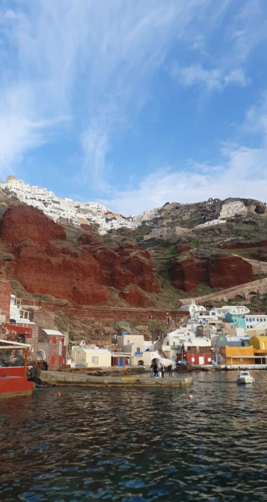 The tour will continue to Megalochori Village, where you can experience the traditional way of life on the island, with its cobbled streets, whitewashed houses, and charming courtyards. The next stop is Imerovigli, offering stunning views of the caldera and the Aegean Sea.